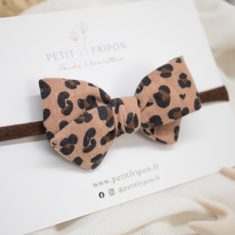 Ajoutez une touche tendance et délicate à la tenue de votre enfant avec ce headband nœud motif léopard caramel.
